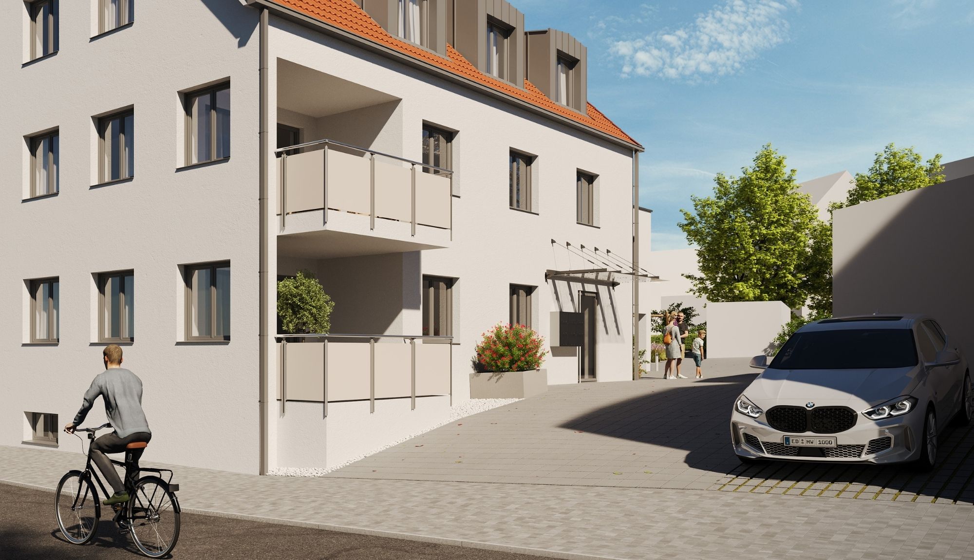 Die Münchner Straße 9 liegt mitten im Zentrum von Isen. Alle Einrichtungen des täglichen Bedarfs sind fußläufig erreichbar: Bäckerei, Supermarkt, Apotheke, Bank, Wochenmarkt, Gastronomie sowie Kindergarten und Schulen. Die beiden Wohnhäuser gruppieren sich um einen geschützten Innenbereich mit begrünten Flächen, Fahrradstellplätzen und Tiefgaragenzufahrt. Auch die regionale Anbindung ist gesichert: Der Bus bringt Sie im Nu zur S-Bahn-Haltestelle Markt Schwaben, das Auto dank der nahegelegenen Autobahnauffahrt über die A94 in einer knappen halben Stunde nach München.